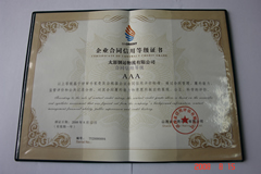 2008年8月12日,山西省信用評(píng)估有限公司對(duì)我公司的合同信用狀況進(jìn)行評(píng)價(jià),確定我公司2007年度合同信用綜合評(píng)價(jià)級(jí)別為AAA級(jí),并頒發(fā)《企業(yè)合同信用等級(jí)證書(shū)》。