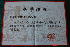 2008年7月25日,我公司被太原市委統(tǒng)戰(zhàn)部授予“統(tǒng)戰(zhàn)系統(tǒng)抗震救災(zāi)先進(jìn)單位”榮譽(yù)稱號。