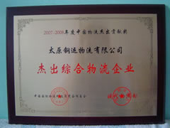 2008年5月24日,我公司在“第二屆中國(guó)(蘇州)國(guó)際物流與供應(yīng)鏈合作發(fā)展峰會(huì)”和“現(xiàn)代物流報(bào)社”表彰活動(dòng)中獲得“中國(guó)杰出綜合物流服務(wù)企業(yè)”殊榮。