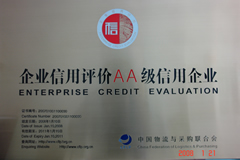 2008年元月9日,我公司被中國物流與采購聯(lián)合會授予“AA級信用企業(yè)”稱號。