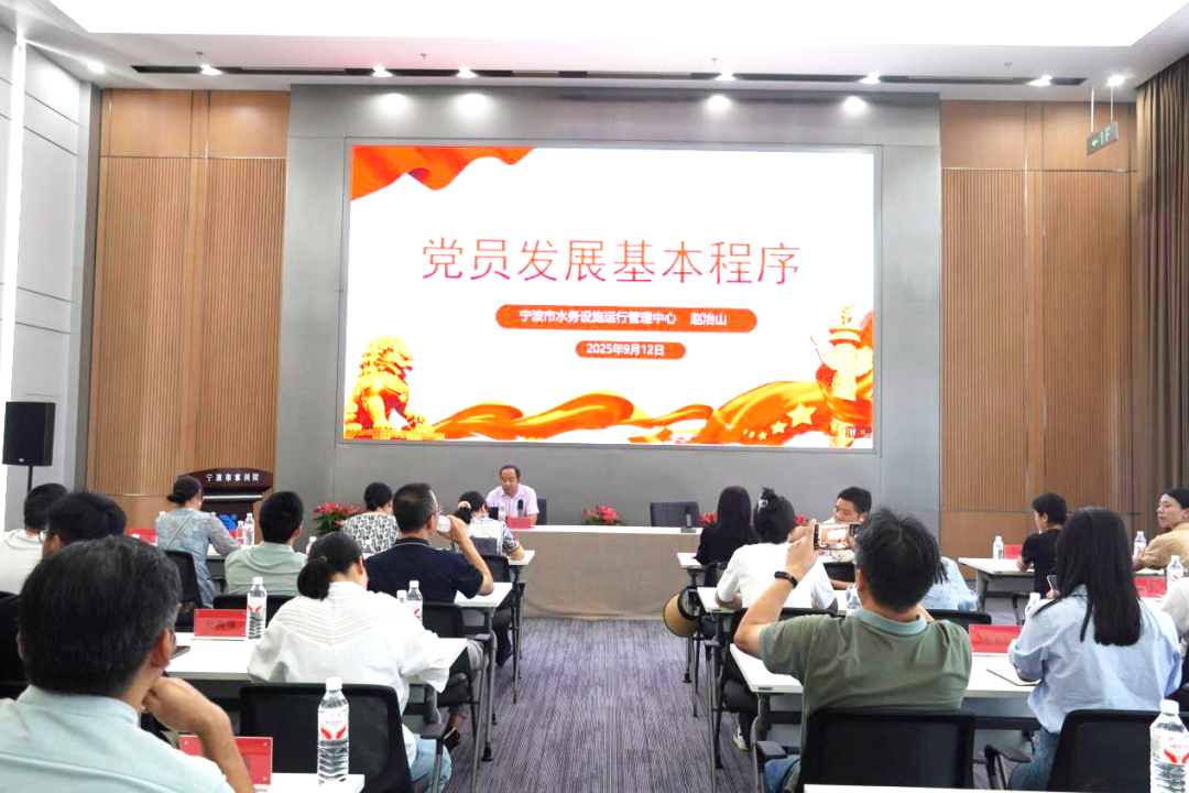 2025年9月12日上午,中共寧波市水利局直屬機關委員會在我院一樓報告廳成功舉辦黨務干部培訓。本次培訓以“銘記抗戰(zhàn)歷史 傳承紅色基因 賦能水利發(fā)展”為主題,旨在進一步提升全局系統(tǒng)黨務干部的政治素養(yǎng)和業(yè)務能力,夯實基層黨組織建設基礎。寧波市水利局系統(tǒng)各基層黨組織組織委員近三十人參加了培訓,我院相關黨務干部一同參與。