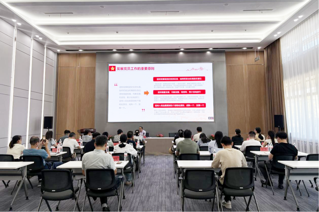 隨后,參訓人員來到我院新大樓,在參觀了院史展廳和黨建活動室之后,于一樓報告廳開展黨員發(fā)展實務專題培訓。本次培訓邀請到市水務設施運行管理中心支部委員趙治山,圍繞黨員發(fā)展工作的全流程、各環(huán)節(jié)進行了系統(tǒng)講解,重點對發(fā)展黨員工作中的標準要求、文書規(guī)范和常見問題作了詳細說明。培訓內容緊密結合工作實際,針對性強,有效提升了參訓人員的實務操作能力。與會黨務干部認真聆聽了培訓內容,并就實際工作中遇到的問題相互進行了交流探討。
